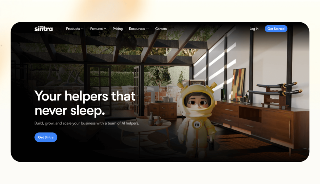 Sintra.ai says it integrates with your favorite workflows and tools: you can bring your existing systems, data, tools and have the AI helpers work within them.